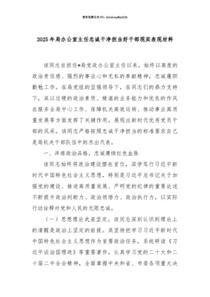 【七哥公文】2025年:【七哥公文】2025年局办公室主任忠诚干净担当好干部现实表现材料+更多免费公文+VX:QiGeGongWen2024+更多免费公文+VX:QiGeGongWen2024