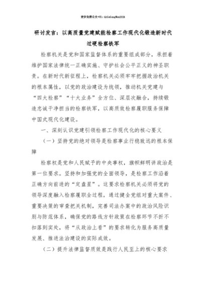 【七哥公文】2025年:【七哥公文】研讨发言:以高质量党建赋能检察工作现代化锻造新时代过硬检察铁军+更多免费公文+VX:QiGeGongWen2024+更多免费公文+VX:QiGeGongWen2024