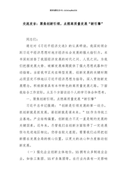 【七哥公文】2025年:【七哥公文】交流发言:聚焦创新引领,点燃高质量发展“新引擎”+更多免费公文+VX:QiGeGongWen2024+更多免费公文+VX:QiGeGongWen2024