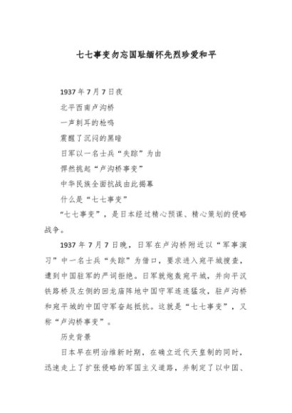 【七哥公文】2025年:【七哥公文】七七事变 勿忘国耻 缅怀先烈 珍爱和平+更多免费公文+VX:QiGeGongWen2024+更多免费公文+VX:QiGeGongWen2024