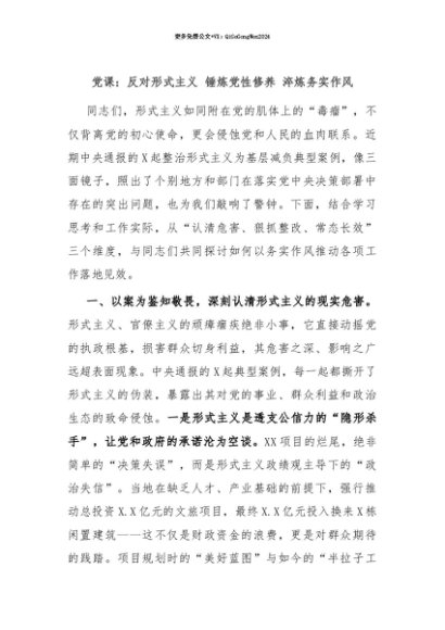 【七哥公文】2025年:【七哥公文】党课:反对形式主义 锤炼党性修养 淬炼务实作风+更多免费公文+VX:QiGeGongWen2024+更多免费公文+VX:QiGeGongWen2024
