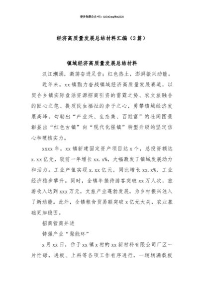 【七哥公文】2025年:【七哥公文】(3篇)经济高质量发展总结材料汇编+更多免费公文+VX:QiGeGongWen2024+更多免费公文+VX:QiGeGongWen2024