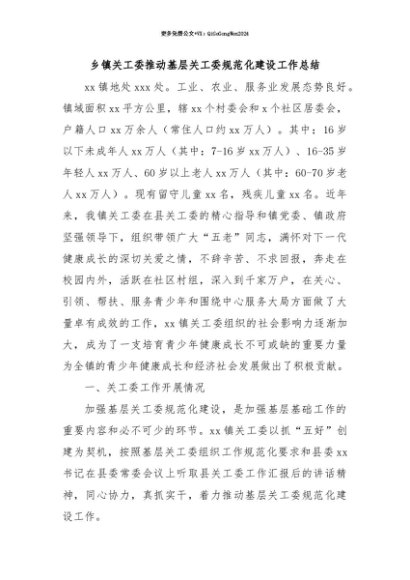【七哥公文】2025年:【七哥公文】乡镇关工委推动基层关工委规范化建设工作总结+更多免费公文+VX:QiGeGongWen2024+更多免费公文+VX:QiGeGongWen2024