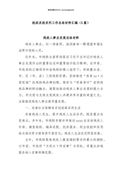 【七哥公文】2025年:【七哥公文】(5篇)统战系统系列工作总结材料汇编+更多免费公文+VX:QiGeGongWen2024+更多免费公文+VX:QiGeGongWen2024