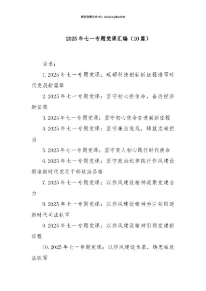 【七哥公文】2025年:【七哥公文】(10篇)2025年七一专题党课汇编+更多免费公文+VX:QiGeGongWen2024+更多免费公文+VX:QiGeGongWen2024