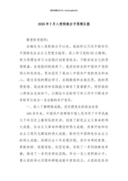 【七哥公文】2025年:【七哥公文】2025年7月入党积极分子思想汇报+更多免费公文+VX:QiGeGongWen2024+更多免费公文+VX:QiGeGongWen2024
