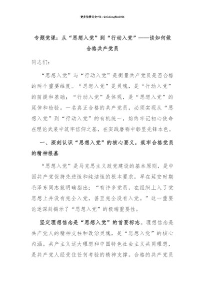 【七哥公文】2025年:【七哥公文】专题党课:从“思想入党”到“行动入党”——谈如何做合格共产党员+更多免费公文+VX:QiGeGongWen2024+更多免费公文+VX:QiGeGongWen2024