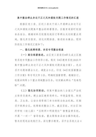 【七哥公文】2025年:【七哥公文】集中整治群众身边不正之风和腐败问题工作情况的汇报+更多免费公文+VX:QiGeGongWen2024+更多免费公文+VX:QiGeGongWen2024