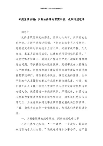 【七哥公文】2025年:【七哥公文】专题党课讲稿:以激浊扬清的雷霆手段,抵制违规吃喝+更多免费公文+VX:QiGeGongWen2024+更多免费公文+VX:QiGeGongWen2024