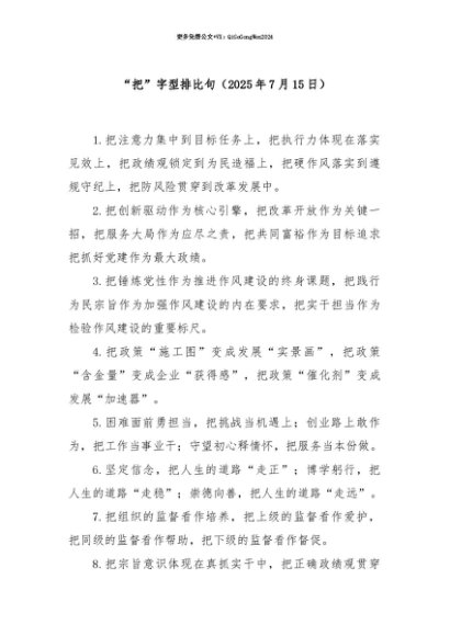 【七哥公文】2025年:【七哥公文】“把”字型排比句(2025年7月15日)+更多免费公文+VX:QiGeGongWen2024+更多免费公文+VX:QiGeGongWen2024