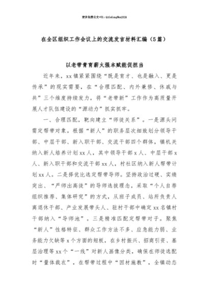 【七哥公文】2025年:【七哥公文】(5篇)在全区组织工作会议上的交流发言材料汇编+更多免费公文+VX:QiGeGongWen2024+更多免费公文+VX:QiGeGongWen2024