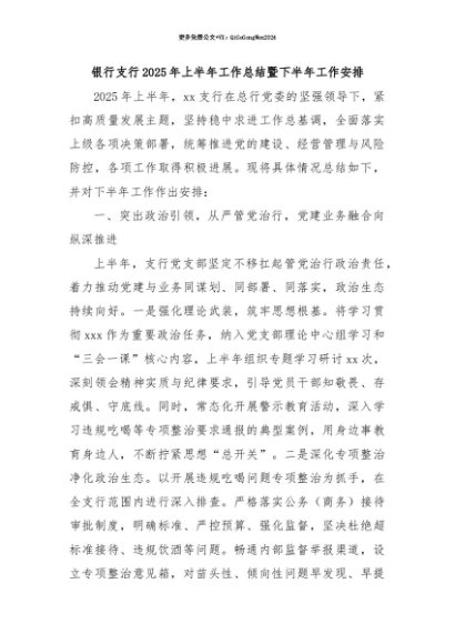 【七哥公文】2025年:【七哥公文】银行支行2025年上半年工作总结暨下半年工作安排+更多免费公文+VX:QiGeGongWen2024+更多免费公文+VX:QiGeGongWen2024