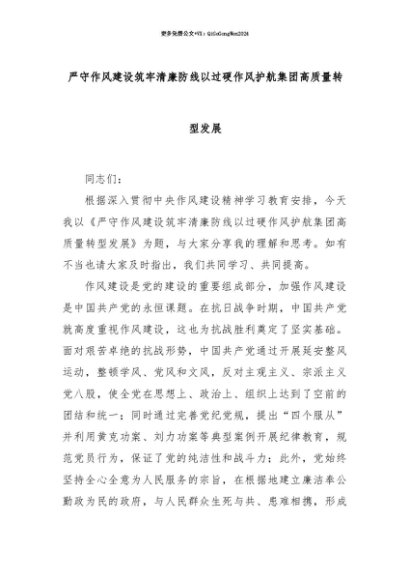 【七哥公文】2025年:【七哥公文】严守作风建设筑牢清廉防线以过硬作风护航集团高质量转型发展+更多免费公文+VX:QiGeGongWen2024+更多免费公文+VX:QiGeGongWen2024