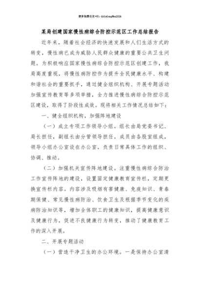 【七哥公文】2025年:【七哥公文】某局创建国家慢性病综合防控示范区工作总结报告+更多免费公文+VX:QiGeGongWen2024+更多免费公文+VX:QiGeGongWen2024