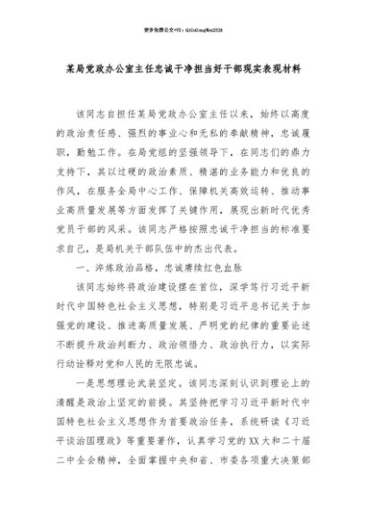 【七哥公文】2025年:【七哥公文】某局党政办公室主任忠诚干净担当好干部现实表现材料+更多免费公文+VX:QiGeGongWen2024+更多免费公文+VX:QiGeGongWen2024