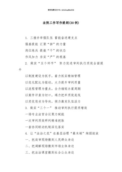【七哥公文】2025年:【七哥公文】(30例)法院工作写作提纲+更多免费公文+VX:QiGeGongWen2024+更多免费公文+VX:QiGeGongWen2024
