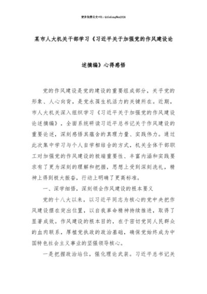 【七哥公文】2025年:【七哥公文】某市人大机关干部学习《习近平关于加强党的作风建设论述摘编》心得感悟+更多免费公文+VX:QiGeGongWen2024+更多免费公文+VX:QiGeGongWen2024