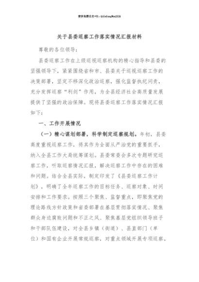 【七哥公文】2025年:【七哥公文】关于县委巡察工作落实情况汇报材料+更多免费公文+VX:QiGeGongWen2024+更多免费公文+VX:QiGeGongWen2024