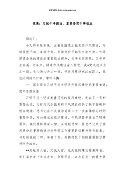 【七哥公文】2025年:【七哥公文】党课:忠诚干净担当,求真务实干事创业+更多免费公文+VX:QiGeGongWen2024+更多免费公文+VX:QiGeGongWen2024