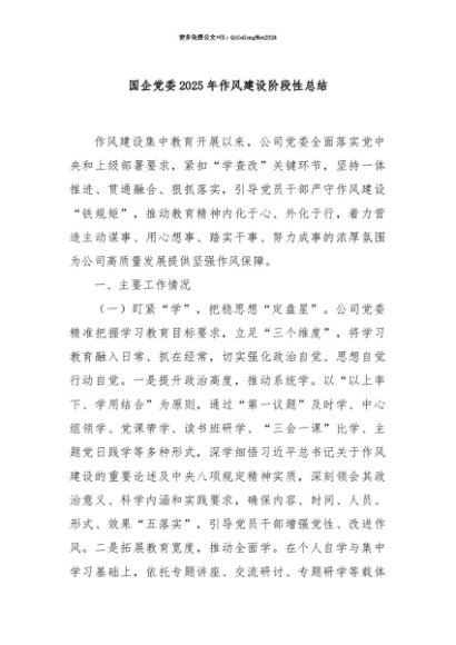 【七哥公文】2025年:【七哥公文】国企党委2025年作风建设阶段性总结+更多免费公文+VX:QiGeGongWen2024+更多免费公文+VX:QiGeGongWen2024