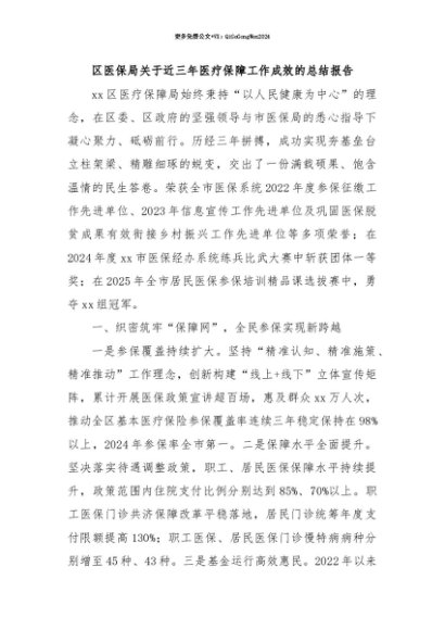 【七哥公文】2025年:【七哥公文】区医保局关于近三年医疗保障工作成效的总结报告+更多免费公文+VX:QiGeGongWen2024+更多免费公文+VX:QiGeGongWen2024
