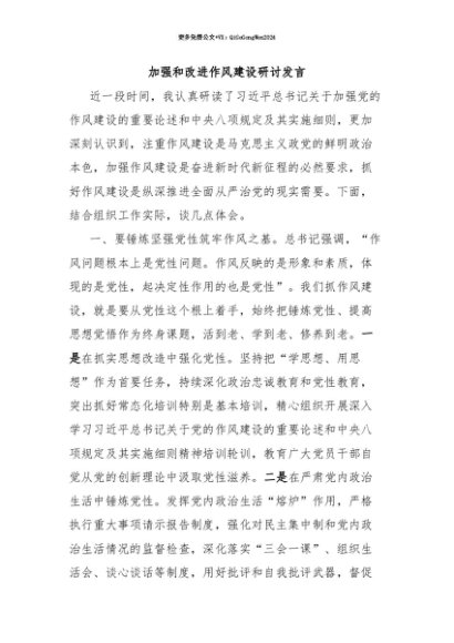 【七哥公文】2025年:【七哥公文】加强和改进作风建设研讨发言+更多免费公文+VX:QiGeGongWen2024+更多免费公文+VX:QiGeGongWen2024