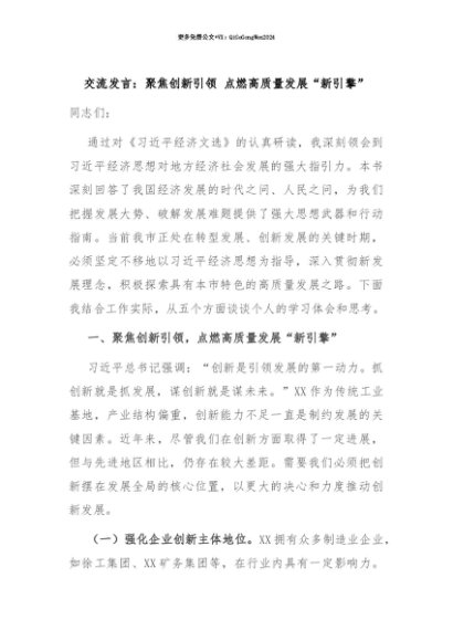 【七哥公文】2025年:【七哥公文】交流发言:聚焦创新引领 点燃高质量发展“新引擎”+更多免费公文+VX:QiGeGongWen2024+更多免费公文+VX:QiGeGongWen2024