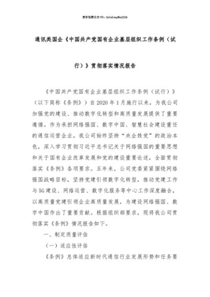 【七哥公文】2025年:【七哥公文】通讯类国企《中国共产党国有企业基层组织工作条例(试行)》贯彻落实情况报告+更多免费公文+VX:QiGeGongWen2024+更多免费公文+VX:QiGeGongWen2024