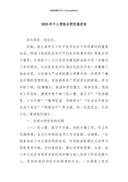 【七哥公文】2025年:【七哥公文】2025年个人党性分析交流发言+更多免费公文+VX:QiGeGongWen2024+更多免费公文+VX:QiGeGongWen2024