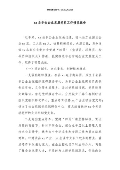 【七哥公文】2025年:【七哥公文】xx县非公企业发展党员工作情况报告+更多免费公文+VX:QiGeGongWen2024+更多免费公文+VX:QiGeGongWen2024