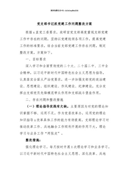 【七哥公文】2025年:【七哥公文】党支部书记抓党建工作问题整改方案+更多免费公文+VX:QiGeGongWen2024+更多免费公文+VX:QiGeGongWen2024