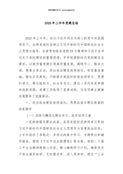【七哥公文】2025年:【七哥公文】2025年上半年党建总结+更多免费公文+VX:QiGeGongWen2024+更多免费公文+VX:QiGeGongWen2024