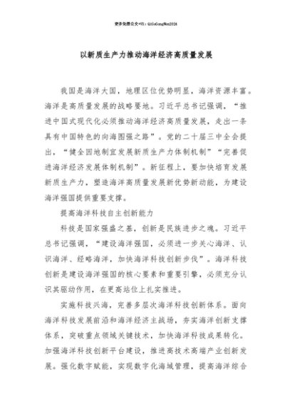 【七哥公文】2025年:【七哥公文】以新质生产力推动海洋经济高质量发展+更多免费公文+VX:QiGeGongWen2024+更多免费公文+VX:QiGeGongWen2024