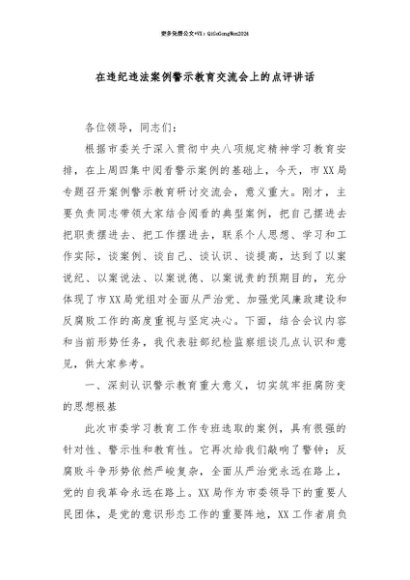 【七哥公文】2025年:【七哥公文】在违纪违法案例警示教育交流会上的点评讲话+更多免费公文+VX:QiGeGongWen2024+更多免费公文+VX:QiGeGongWen2024