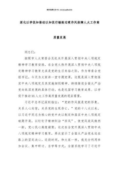 【七哥公文】2025年:【七哥公文】深化以学促知推动以知促行锤炼过硬作风保障人大工作高质量发展+更多免费公文+VX:QiGeGongWen2024+更多免费公文+VX:QiGeGongWen2024