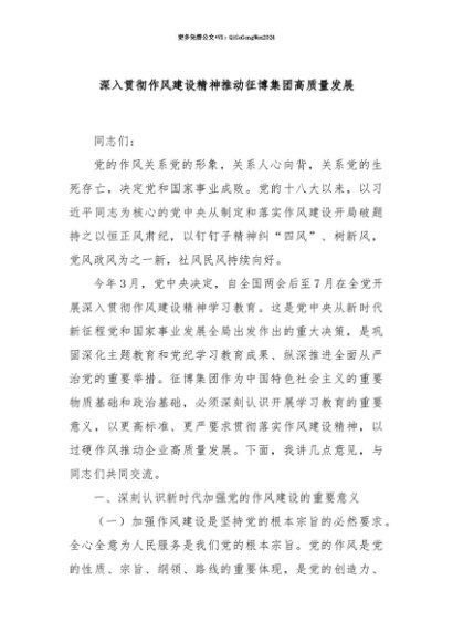 【七哥公文】2025年:【七哥公文】深入贯彻作风建设精神推动征博集团高质量发展+更多免费公文+VX:QiGeGongWen2024+更多免费公文+VX:QiGeGongWen2024