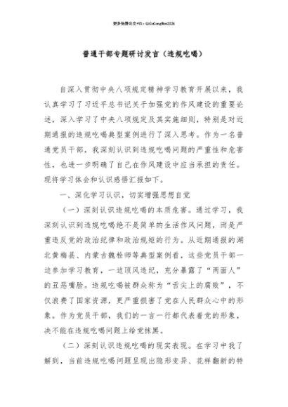 【七哥公文】2025年:【七哥公文】普通干部专题研讨发言(违规吃喝)+更多免费公文+VX:QiGeGongWen2024+更多免费公文+VX:QiGeGongWen2024