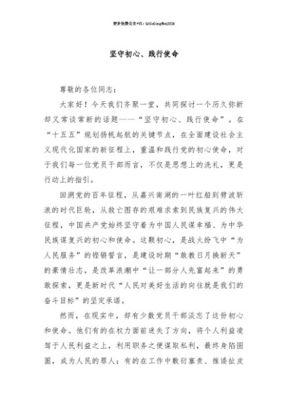 【七哥公文】2025年:【七哥公文】坚守初心、践行使命+更多免费公文+VX:QiGeGongWen2024+更多免费公文+VX:QiGeGongWen2024