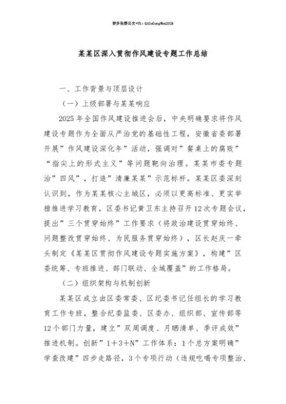 【七哥公文】2025年:【七哥公文】某某区深入贯彻作风建设专题工作总结+更多免费公文+VX:QiGeGongWen2024+更多免费公文+VX:QiGeGongWen2024