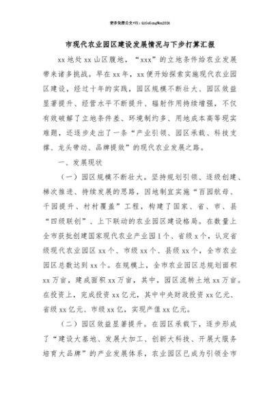 【七哥公文】2025年:【七哥公文】市现代农业园区建设发展情况与下步打算汇报+更多免费公文+VX:QiGeGongWen2024+更多免费公文+VX:QiGeGongWen2024