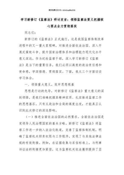 【七哥公文】2025年:【七哥公文】学习新修订《监察法》研讨发言:领悟监察法要义把握核心要点全力贯彻落实+更多免费公文+VX:QiGeGongWen2024+更多免费公文+VX:QiGeGongWen2024