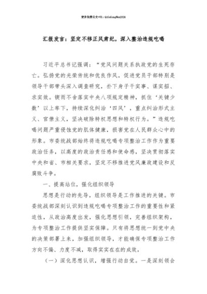 【七哥公文】2025年:【七哥公文】汇报发言:坚定不移正风肃纪,深入整治违规吃喝+更多免费公文+VX:QiGeGongWen2024+更多免费公文+VX:QiGeGongWen2024