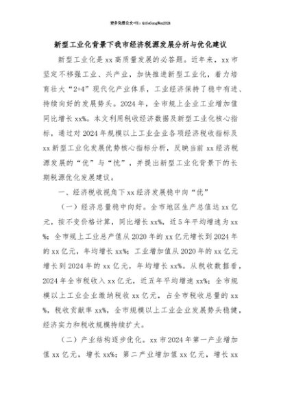 【七哥公文】2025年:【七哥公文】新型工业化背景下我市经济税源发展分析与优化建议+更多免费公文+VX:QiGeGongWen2024+更多免费公文+VX:QiGeGongWen2024