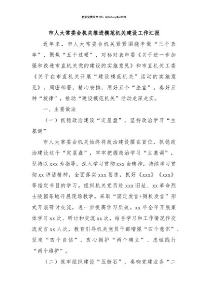 【七哥公文】2025年:【七哥公文】市人大常委会机关推进模范机关建设工作汇报+更多免费公文+VX:QiGeGongWen2024+更多免费公文+VX:QiGeGongWen2024