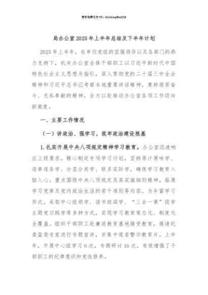 【七哥公文】2025年:【七哥公文】局办公室2025年上半年总结及下半年计划+更多免费公文+VX:QiGeGongWen2024+更多免费公文+VX:QiGeGongWen2024