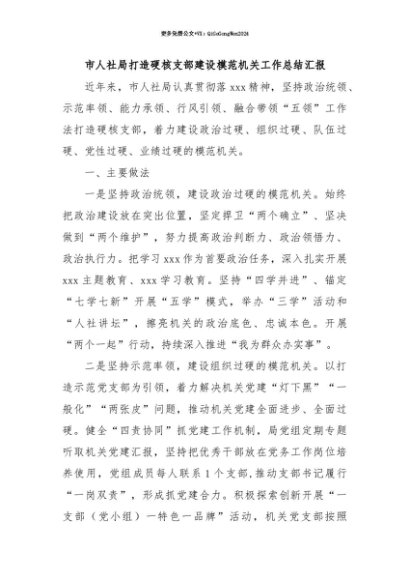 【七哥公文】2025年:【七哥公文】市人社局打造硬核支部建设模范机关工作总结汇报+更多免费公文+VX:QiGeGongWen2024+更多免费公文+VX:QiGeGongWen2024