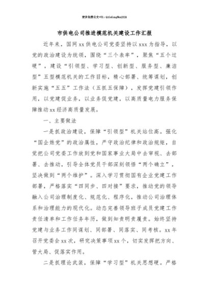【七哥公文】2025年:【七哥公文】市供电公司推进模范机关建设工作汇报+更多免费公文+VX:QiGeGongWen2024+更多免费公文+VX:QiGeGongWen2024