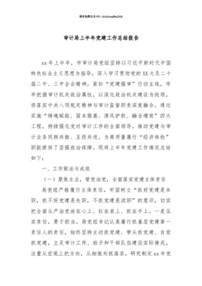 【七哥公文】2025年:【七哥公文】审计局上半年党建工作总结报告+更多免费公文+VX:QiGeGongWen2024+更多免费公文+VX:QiGeGongWen2024