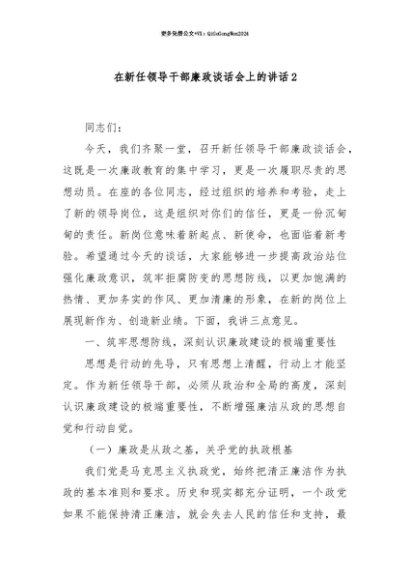 【七哥公文】2025年:【七哥公文】在新任领导干部廉政谈话会上的讲话2+更多免费公文+VX:QiGeGongWen2024+更多免费公文+VX:QiGeGongWen2024