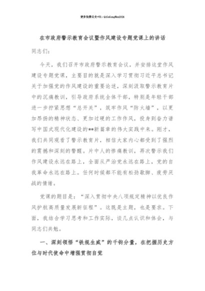【七哥公文】2025年:【七哥公文】在市政府警示教育会议暨作风建设专题党课上的讲话+更多免费公文+VX:QiGeGongWen2024+更多免费公文+VX:QiGeGongWen2024